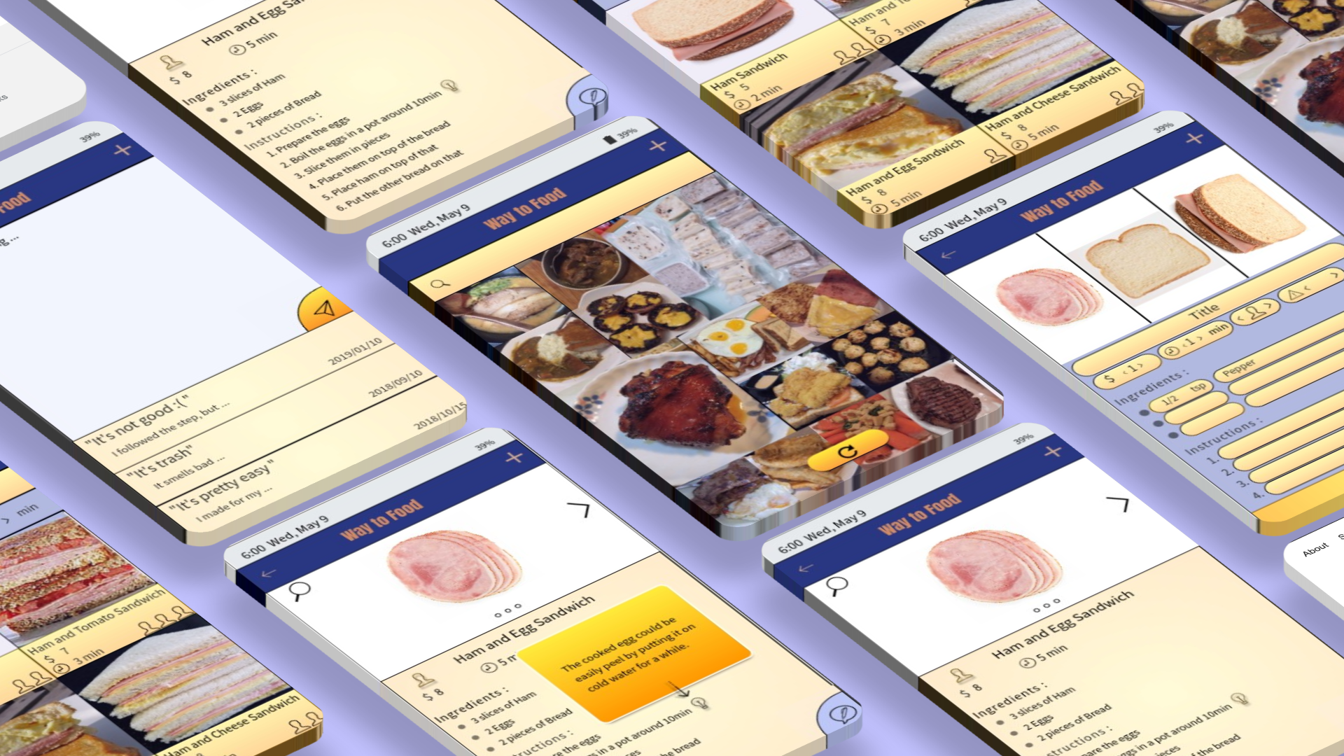 The aim of Way to Food is to cut food waste and be wise on their food choices. It provides different receipes for leftover foods when users type the name of a food. The target audiences are family and students.